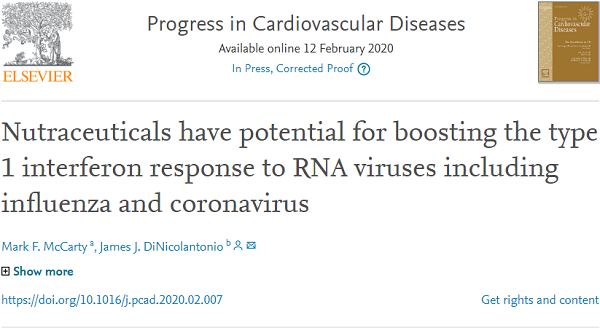 In light of worldwide concern regarding the recent outbreak of a deadly novel strain of coronavirus in China, it is fortuitous that two recent discoveries point the way to effective nutraceutical measures for potentiating the type 1 interferon response to RNA viruses.